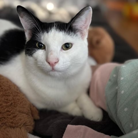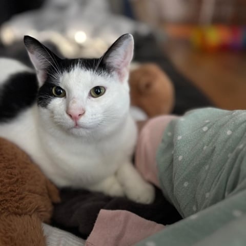 Pirate loves to paddle and play in his water bowl. Loves sneaking off with the other cats toys and loves cuddling and chatting!