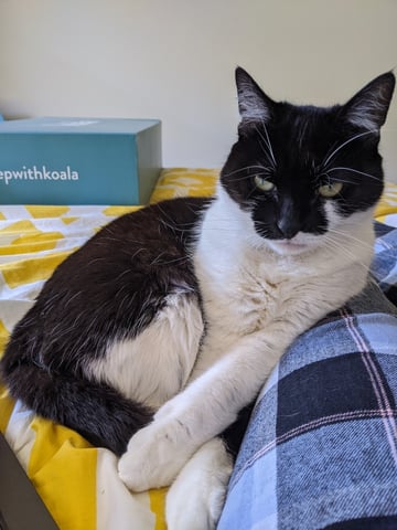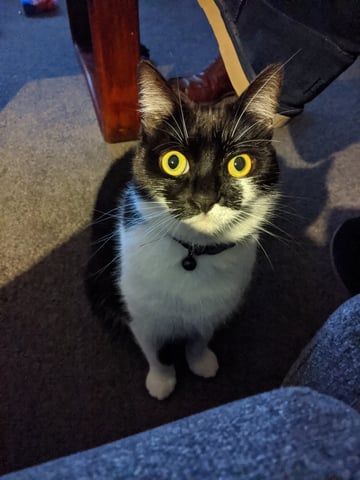 Indie is a black-and-white short-haired beauty who carries herself with queenly confidence and midlife grace. She's affectionate, clever, and knows exactly what she wants. She's happiest when she's near her human -- preferably on your lap or perched on your shoulders, purring into your ear and headbutting you to show her love. Indie loves to groom your hair, nap in sunny spots, and supervise from a high perch. She has a healthy appetite and will gleefully help herself to your dinner if you're not watching!