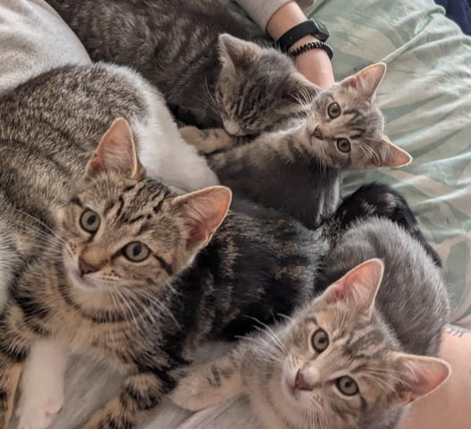 Maya loves being around other cats so is looking for a home with another feline companion. Or to be adopted with one of her sisters or brother (see the other listings for the Scotty litter).
