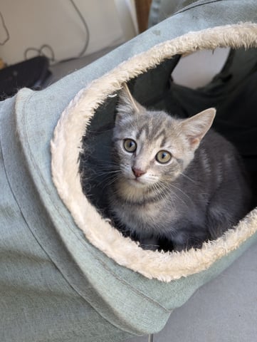 Maya is a confident little girl but hasn't spent too much time around kids or dogs so would need a gentle introduction to both. Are you ready for this sweet, smart baby cat?