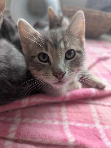 Hugo loves being around other cats so is looking for a home with another feline companion. Or to be adopted with one of his sisters (see the other listings for the Scotty litter).