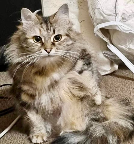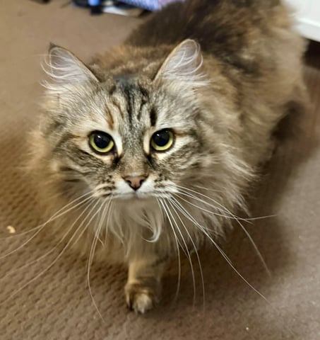 Her best traits are her majestic beauty, her soft gentle presence, and the lovely quiet company she offers. She enjoys resting in sunny spots, lounging on beds, gently head-bumping when she feels safe, and trying to make friends with other cats. She is cautious with new people and may flinch if approached too quickly, but with patience her sweet personality shines through. Milwaukee Bunny does not enjoy loud noises, wet food, or rushed interactions, and prefers a peaceful environment. She truly is a living artwork with a soft heart.