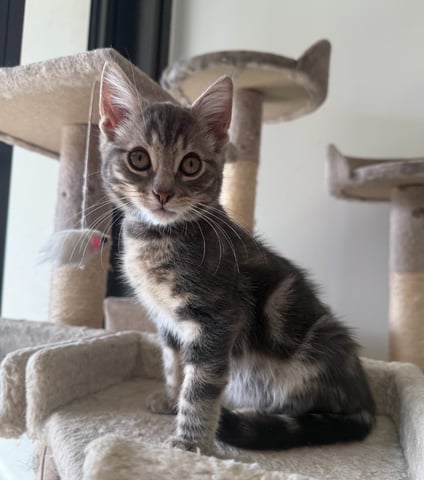 Floobert would suit a wide range of homes, including first-time adopters looking for an easy, relaxed kitten. He's great with other cats and would enjoy feline company, but would also be perfectly content soaking up human attention. Respectful, gentle children would likely be a lovely match for him.