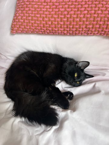 Diablo is a striking black domestic medium hair with luminous yellow eyes and a warm brown belly that adds to his charm. He's a playful, affectionate boy with a big personality -- clever, curious and endlessly amusing. Diablo loves being involved in whatever his humans are doing and will happily follow you from room to room, making sure he doesn't miss a thing.