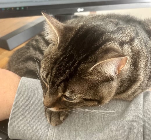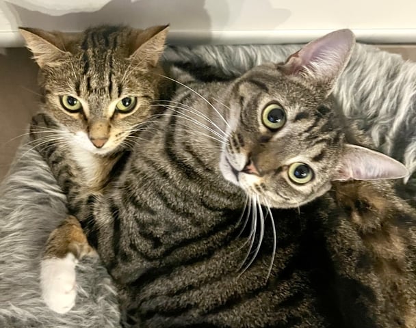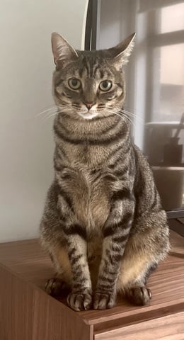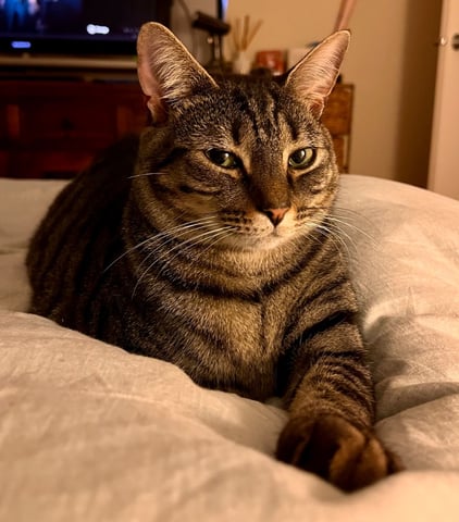 Alfie is a 2-and-a-half-year-old short-haired tabby with an incredibly affectionate personality. He's playful and curious, but his favourite place is always by your side--ready for a cuddle or a head boop. Alfie greets everyone like an old friend and is quick to offer love, warmth, and companionship. He also enjoys a good nap and the occasional case of the zoomies!