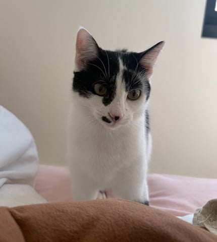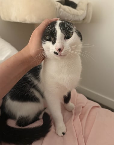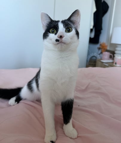 Rocket is a 6-month-old Domestic Short Hair with striking black and white markings and distinctive facial features that make her instantly recognisable. She is affectionate, loving, gentle and wonderfully people-friendly, with a playful mischievous streak that keeps everyone smiling. True to her name, she's quick on her feet and always ready for fun.