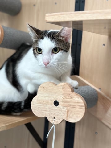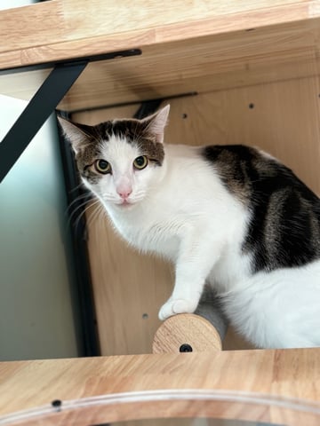 While his past is unknown, Mr. Meowgi has shown himself to be a shy but deeply affectionate boy who simply needs a little time to feel safe. Once he warms up, he becomes an absolute teddy bear, happiest just existing alongside his people and soaking up quiet companionship.