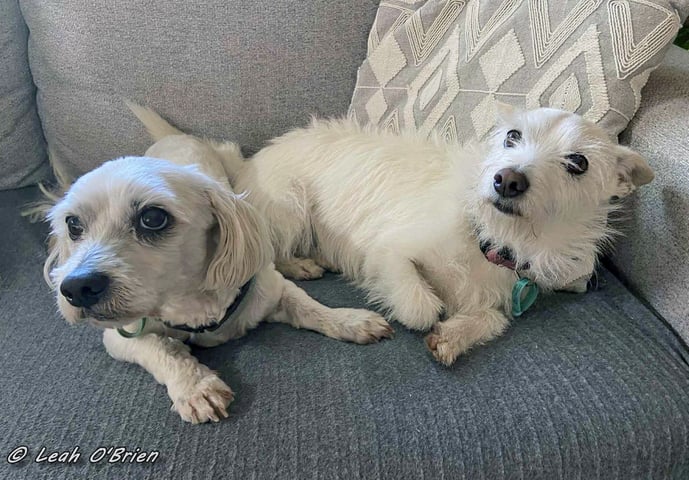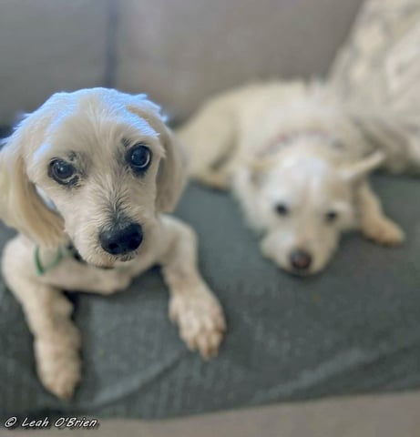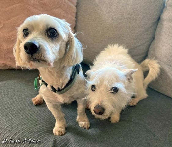 Meet Ziggy and Bailie, the inseparable duo looking for a warm and loving family to call their own. These two small lap dogs are a delightful bonded pair, offering double the companionship and affection. At nine years young, Ziggy, a spirited Jack Russell x West Highland Terrier, and Bailie, a gentle Maltese x Poodle, boast endearing personalities that will surely win your heart.