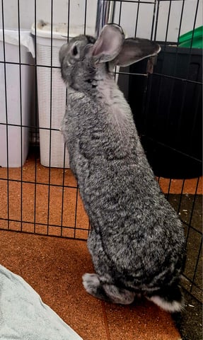 Prepare to be captivated by Amy, a magnificent and sweet Flemish Giant whose presence is as impressive as her charm! This gentle soul is looking for a home where her big heart and playful spirit can truly shine.