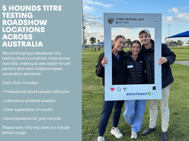 Book here - https://5hounds.com.au/pages/titre-test-for-dogs-australia