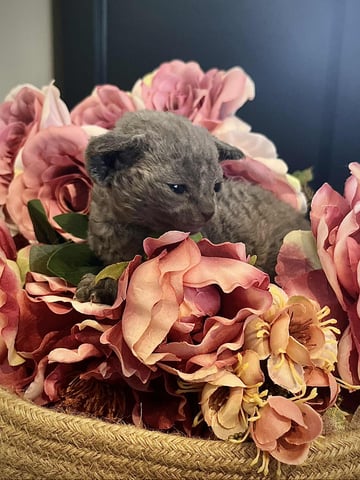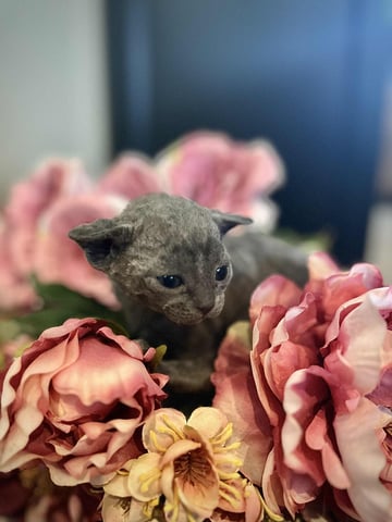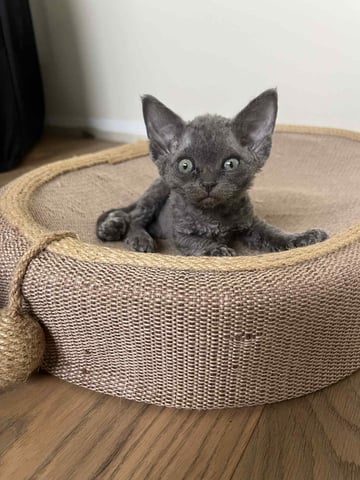 Cleo had six delightful Devon Rex kittens, three blue males are available, ready to bring joy to your home by Christmas! The kittens come in beautiful shades of Blue with a curly or smooth coat. We would be thrilled to help you find your perfect companion! FaceTime available to help you choose your kitten :) - or come for a visit. We can also help arrange transport to most places.