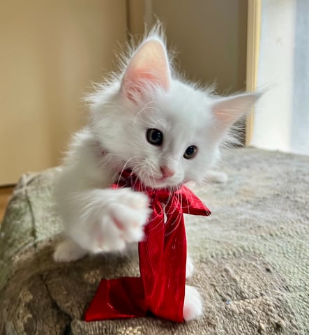 Forelsket Elin aka 'Snowflake' is the last available kitten from this litter. She is 10 weeks old and once desexed , vaccinated and health checked she will be looking for a wonderful loving home.