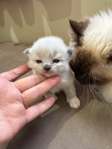 One seal mitted male ragdoll kitten available with pedigree, ready to leave in December.