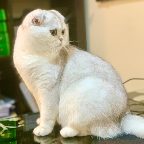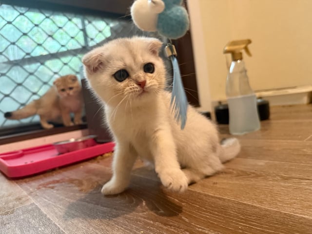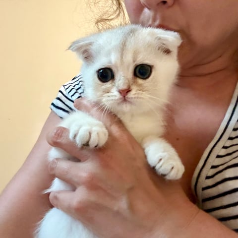 Super cute Silver Shaded Scottish Fold boy named Pepper. We only get 2-3 Silver Scottish fold kittens per year, and this season we won't have another folded-eared kitten until September 2026.