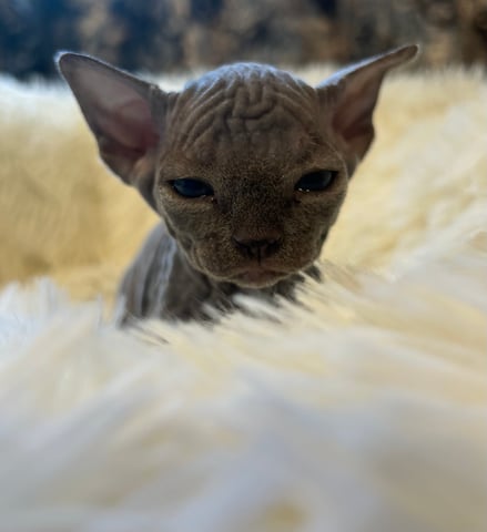 Hand Raised Blue Pedigree Sphynx Girl