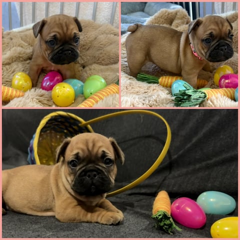 Three fawn female puppies ready to steal your heart. Available for their forever homes from the 25th April 2026.