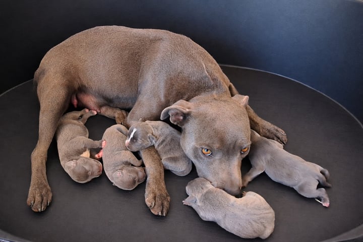We have a beautiful litter of purebred Blue English Staffy puppies looking for their furever homes. Both parents are our dogs and are available for viewing.