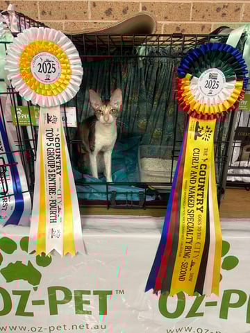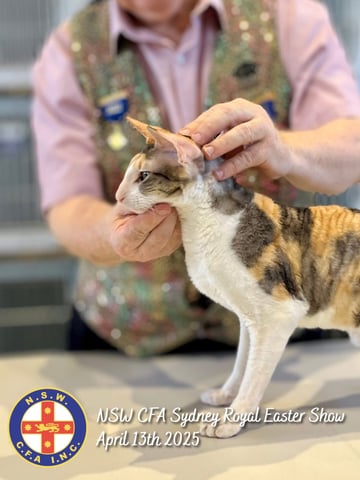 I have been showing my Cornish Rex since 2022, and they have achieved multiple Best in Group, Supreme in Show, and CatsNSW Group 3 Cat of the Year awards.