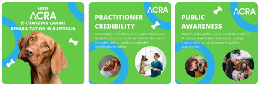 The Australian Canine Rehabilitation Association (ACRA) was founded by a group of qualified, experienced, and like-minded canine rehabilitation practitioners who share a passion for providing quality rehabilitation for dogs and their owners.